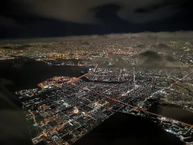 が、写真は撮ってみた。右1列の左2列の機材。1Aだったので、1人座席。通路側で且つ窓側。然るに窓から夜景が綺麗に見えると言う。