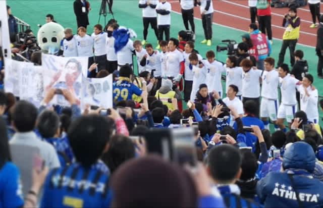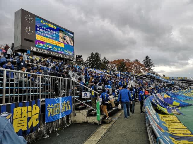 後ろに座っていた女性、確定する前に、まだー?って泣き始めて…。全員、スマホで結果見て、ベンチ側から選手などが走ってきたのを見て皆歓喜の舞、歌、涙。一昨年は、鳥取でJ3優勝のsceneを観たから、再び目の前で優勝を、と思っていたけど、そんなに甘くないよね。ま、でも、J1には上がれるので、切り替える。予算ぐりとか大変だと思うけど…。