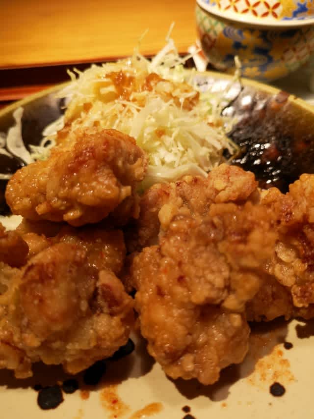 唐揚げと明太子。これでどこのお店で食べているか、分かるなw。一心不乱に食べた。ザザーっとね。でも、よく噛んでさ。味わいも勿論。