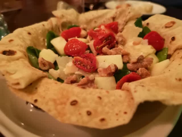 そして、Caprese用のMozzarellaのBuffalaがなく、Burrataを食べたかったのだが敢え無く断念し、Spinacchi Freschiにした。りんごの角切りがなかなか乙で美味しい。