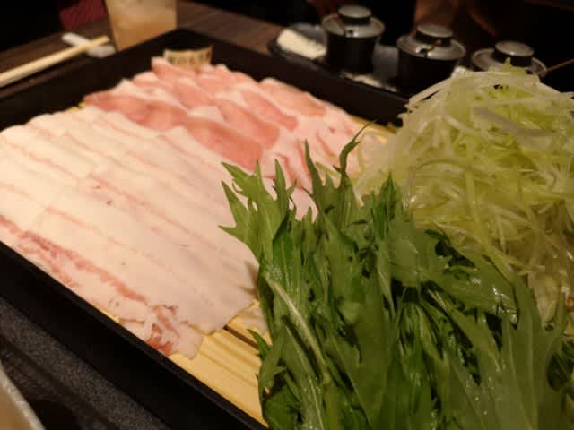 で、実際、豚しゃぶはこだわりが作り方にあるようで、逐一説明をされた。物凄くお出汁が美味しかったけど、そもそもしゃぶしゃぶの語源でもある、お肉を揺らして、しゃぶしゃぶ、と言うのは灰汁が出るからするな、と。ま、どっちでも良いんですが、水菜、ネギを最初に適量お出汁にくぐらせて、そのあと静かにお肉をその上に置いて揺らさず、煮えるのを待つのが流儀らしい。無菌豚らしく、生は無理だけど、仮にそうした食べ方をしたとしても安全だとか言っていた。まぁ、きちんと火を通さないと美味しくないんだろう。