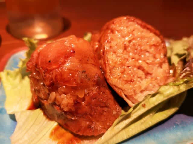 最後に、肉巻きおにぎりを半分子して締めに。これ、嫌いな人居ないと思うな。熱々で、激うまでした。