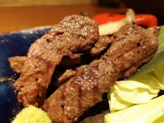 黒毛和牛のサイコロステーキ。ジューシーで、とても美味しかったです。何塩だか忘れましたが、それとわさびを合わせて食す。美味し。