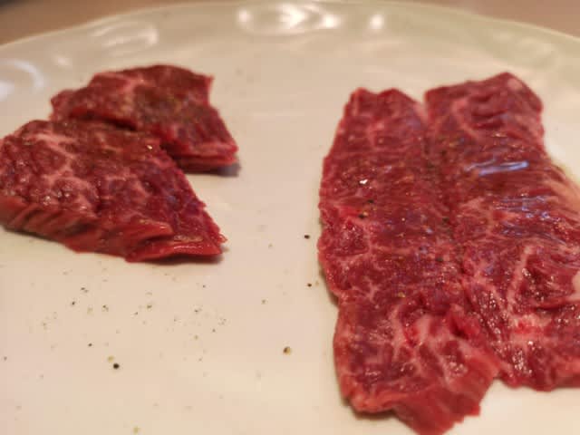 サガリとハラミを両方とも出してくれて。焼き比べ。