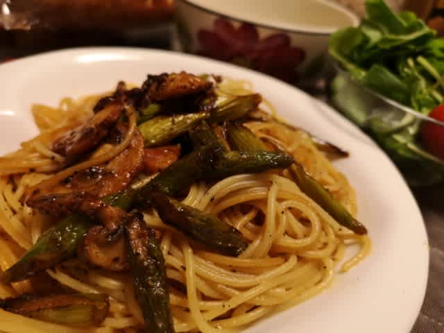 でも今日は、いつもと違うオリーブオイルを。しまぱんに先日パンを買いに行ったらお店のレジの横に、オリーブオイルの瓶が置いてあって。そこで購入したオリーブオイルを使ってみたけど、アスパラとマッシュルームのスライスをその新しいオリーブオイルで炒めたところ、物凄く香りがよろし。ローズマリーの香りが炒めているそばから充満してきて。いやぁ、美味しかった。