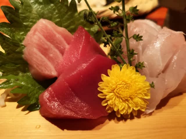 そしてお刺身三種盛り。結構、久々かも、お刺身を食べたのは。
