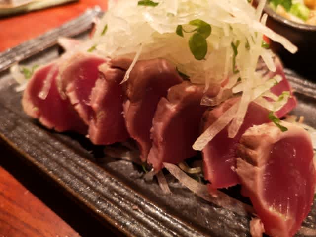 そして最後に鰹のたたき。敢えてではないのだが、締めご飯とかを食べなかったので、これがこの日最後の食事。