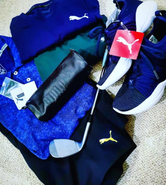 ドライフイットのTシャツを2枚、ゴルフシャツ1枚、ハーフパンツ1つ、56度のウェッジ、本革ペンケース、それと、奥さんの靴。
