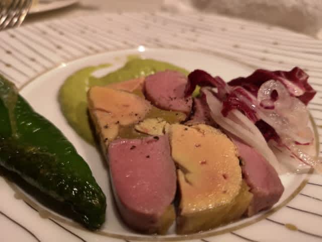 フォアグラ好きには堪らない、甘みのある旨味。絶品でしたね。これが、万願寺とうがらしのソースだったのであるが、途中間違えてピスタチオ、と言ってから、それを拾われ、えぇ?ピスタチオ?ちゃいますよー、と延々とイジられる…。大阪の人、怖いわぁ。。。。