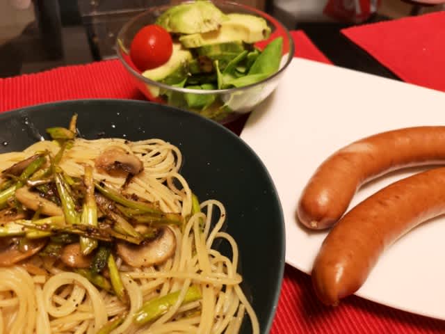 その中には、今夜のメニューにはないが、ずっと探していたアゴだしの焼きあごそのもの、の袋が4つも入っていたりして。いや、ずっと探していたのよね、都内で調達できないか、と。流石、明治屋。あと、明治屋ではないが、京都の原了郭の黒七味も買えた。いや、流石、タマタカ。今夜唯一使ったのはソーセージだけかな。あとは、アスパラガスとマッシュルームのオイルパスタとかの食材は元々あったし、アボカドとかも。