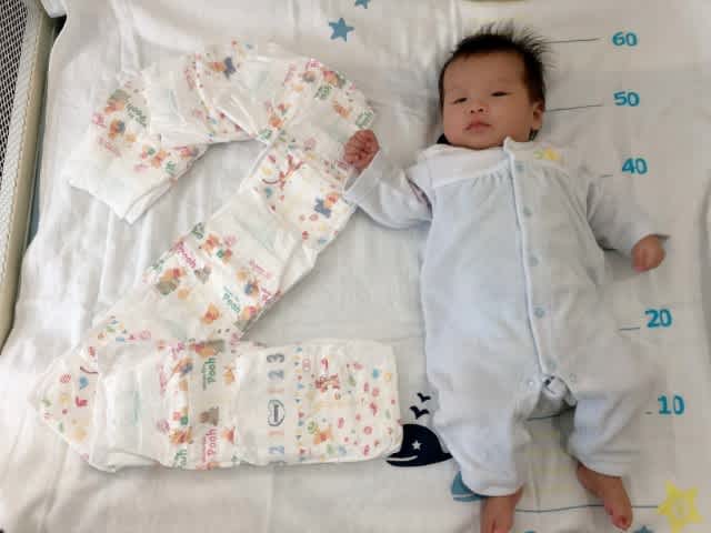 クライアントスタッフからお祝いで頂いたお包みには身長の刻みがあり、それで言えば60cmは超えたかな?
