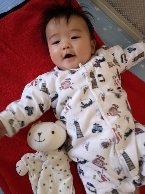 早く起きても、ミルク飲んだあとまた寝ているみたいで。一度寝ると、機嫌良し。いつも、眠たいのに寝る方法がまだ確立されていなくて寝れず、機嫌悪い。眠たきゃ、寝れば良いのにって思うけどね。