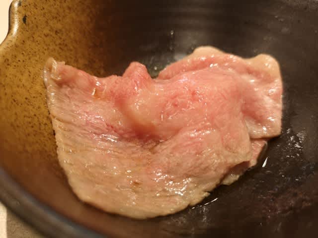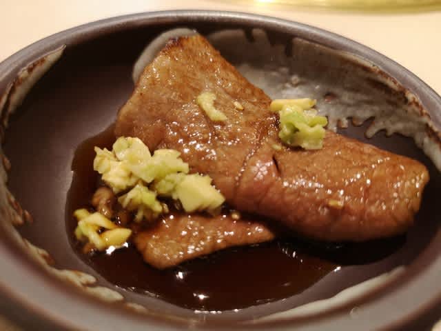 焼きしゃぶね。シンプルに大根おろしのみ。絶品。結構、あとの方で出てきたのだが、このあっさり感は最初に出てくるよりも意外と良いかも。