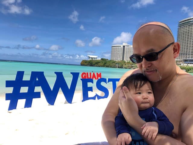 赤ちゃん用の水着代わりになるオムツを履いてもらい、りゅうりゅうと海に。