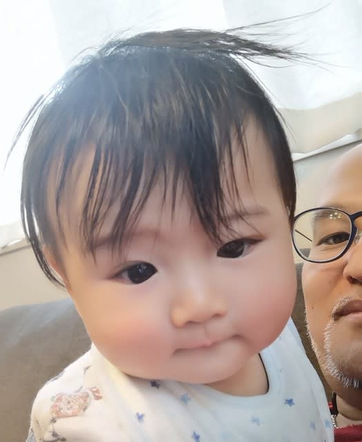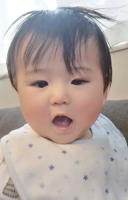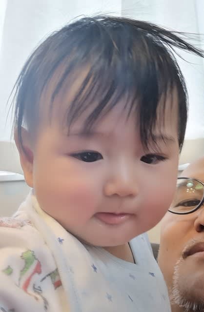 泣いて、おむつ替えする時は、ホッペタハミハミッて出来るから、喜んでおむつ替えしているんだけどねぇw。