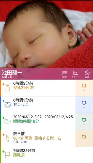 それが、Androidでもアプリがあり、且つ、夫婦でデータを共有出来ることが分かった。よく、夫婦の共有カレンダーアプリや写真共有アプリなんかはあるが、こういう授乳やらの育児内容についても共有アプリがあるのは、実に喜ばしい。奥さんがしてくれていることがよく分かるので。前は、おいらが接待や会食なんかで夜出かけたあと(一度お風呂入れるために帰宅して、その後外に出ることが殆どなので)、日付が変わるくらいのタイミングでミルクをあげることを前提に、そのくらいのタイミングを見計らって、会食から帰宅をしていた。が、大体、最後に授乳をしたのが何時なのか、それが分からないと帰るタイミングを見定められなかったので、メッセージをもらうようにしていた。しかし、たまにそれがなかったりして、おいらの帰宅時間が間に合わなくなったりすることもあったりしたので、どうしたものか、と思っていたのであった。