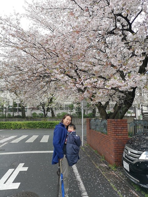 帰り道に、家の近くで咲き誇る桜の下でパチリ。