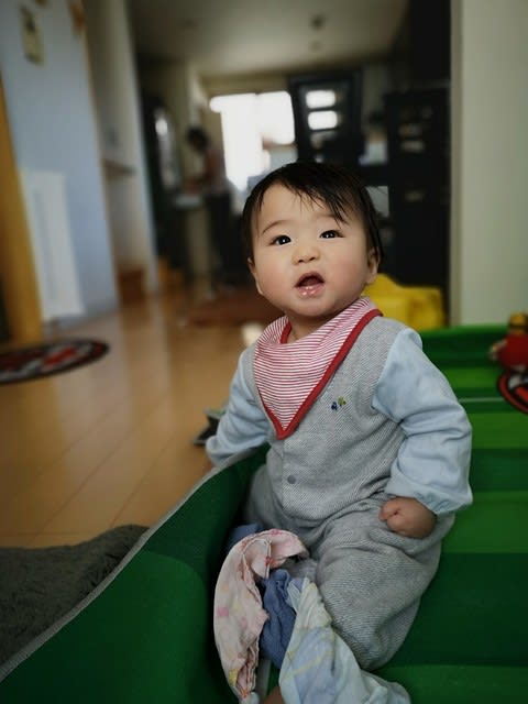 それでも、安定性は悪く、後ろにゴツンっと頭をフロアマットに打ち付けて、びゃーって…。ま、フローリングで直接、ゴン、って言うのはないようにしているし、知っている限りない。最近は後ろにひっくり返ると言うのはなくなってきているかな。その代わり、前のめりで顔からゴン、って言うのがちょくちょくあってちょっと目が離せないな。ちゃんと見ていないと危ない。危ないところを救わないといけないよね。でも、それがまた楽しいと言うか、親としての責務の大きさを感じつつ、成長を喜べると言うね。