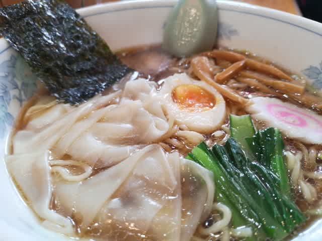 奥さんはワンタン麺。このスープはもう一度食べないと概要が掴めず。一瞬魚介と椎茸の香りがしたんだが。。。
