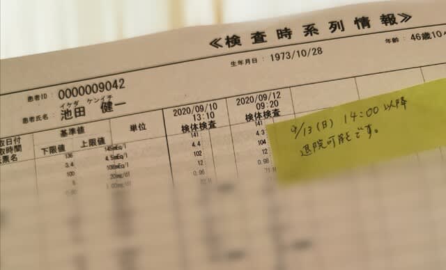 朝一番から血を抜かれる日が始まった入院3日目も終わり。