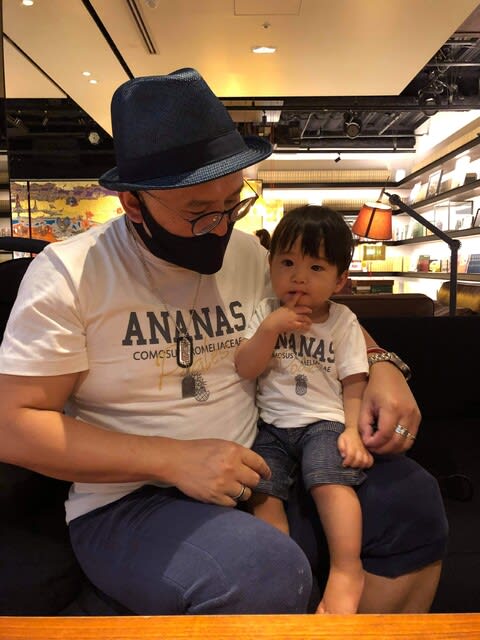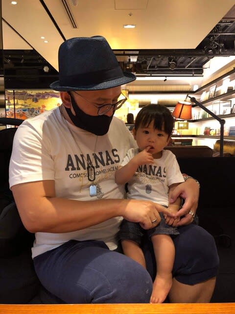 今日は朝から奥さんに言われていたのよね、この前横浜で買ったTshirt着せるから、と。