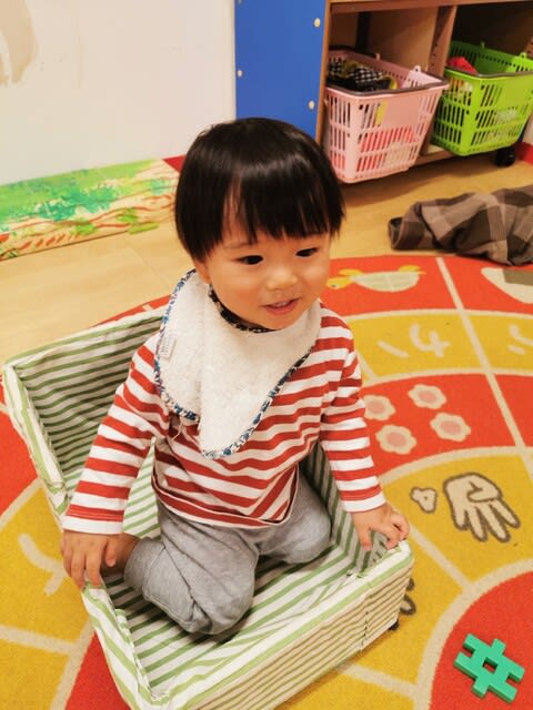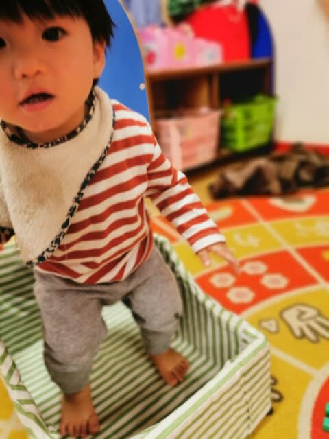 自分から箱に入ったのに、急に不安になったのか、パパ抱っこ!!って。