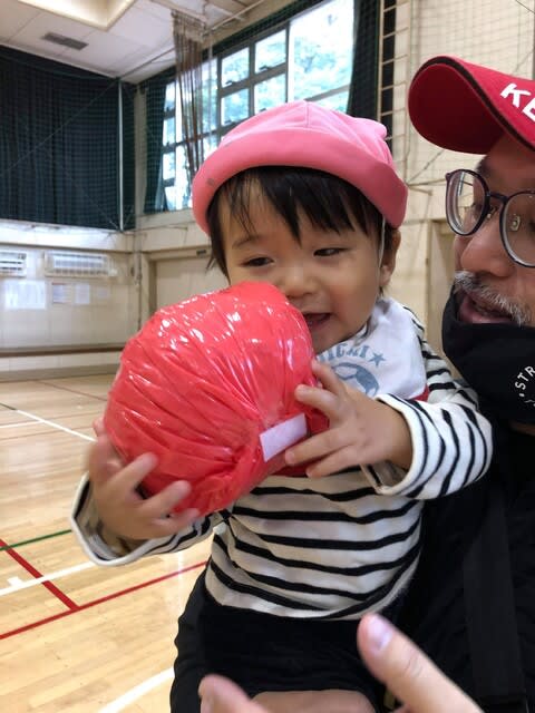 保育園のある場所からと目と鼻の先にある中学校の体育館が借りられたようで、運動会が開催された。これは園長先生の話に拠るとラッキーなことのようだ。中々体育館が借りられると言うこともないらしく。