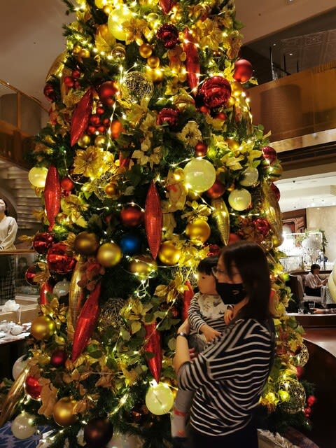昨日の夜も、朝ご飯も食べたレストランに大きなクリスマスツリーがね。