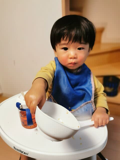 この後ヨーグルトも食べたしね。いっぱい食べられるようになったねー。大きくなるね。