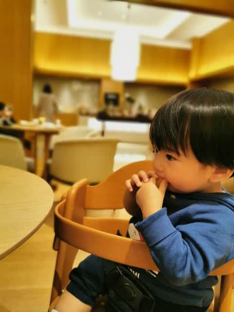 もし、食べるものが少なかった時のことを考えて、1階のレストランのシルクロードの空き状況も聞いてみた。空いていると言われ万が一の食べる場所も確保したし、と言うことで2階にあるExecutive Loungeに。すると、full loadedで一度部屋に。程なくしてcallがあり、再び向かう。子連れは19時までと言われていたが、混雑状況から19時半までと。