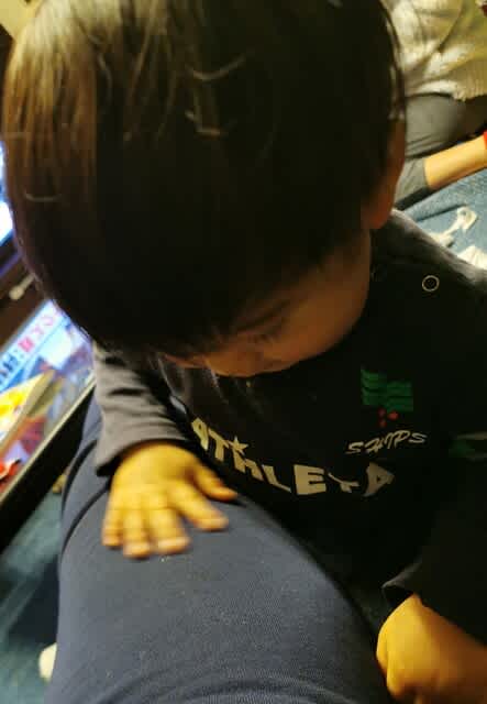 みらんちゃんは、その後もパパの太ももを撫でなでってしていて、にんまりと笑ったのよね。