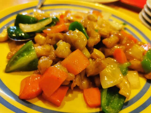 その後、最初にオーダーしたものとしては、鶏肉と野菜のカシューナッツ炒めが出てきた。
