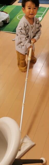 なので反省してか?フローリングの掃除を始めたみらんちゃんw。