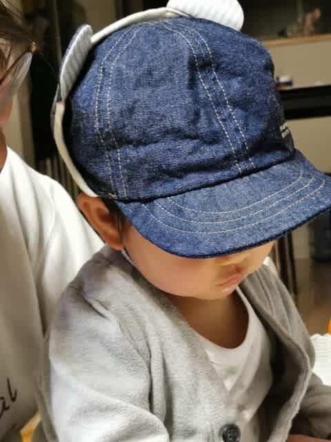 奥さんとlunchを食べに行った帰り道、いつも通り過ぎるお店の店頭に置いてあった、デニム生地の赤ちゃん用の帽子。