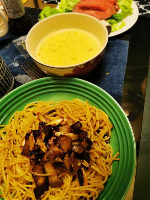 お昼ご飯後に、駒沢公園通りと246の交差点の所にある八百屋でホワイトアスパラとマッシュルームを買っていたので、みらんくんのお迎えの前に下拵え。今日のパスタは和風パスタなので、オリーブオイルと醤油とをフュージョン。意外と美味しい。でも今日のパスタは塩辛かったな。。。失敗。