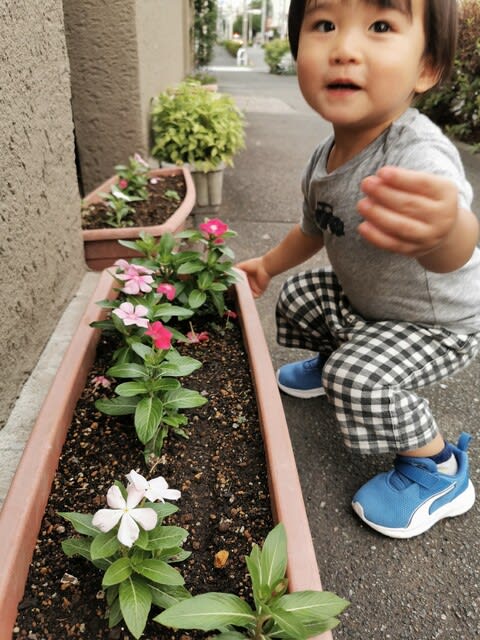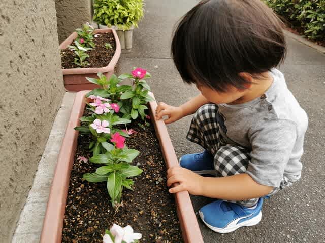 『保育園からの帰り道にお花を愛でるみらんくん・・・』