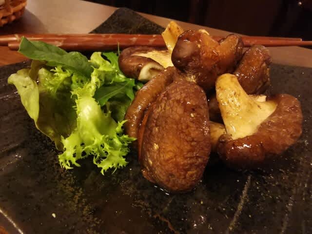 椎茸焼き。これはね、みらんくんが食べると思ってオーダーしたのに、親だけ食べた。めっちゃジューシー。これが単品で成立する程椎茸そのものが美味しいと言うことですね。