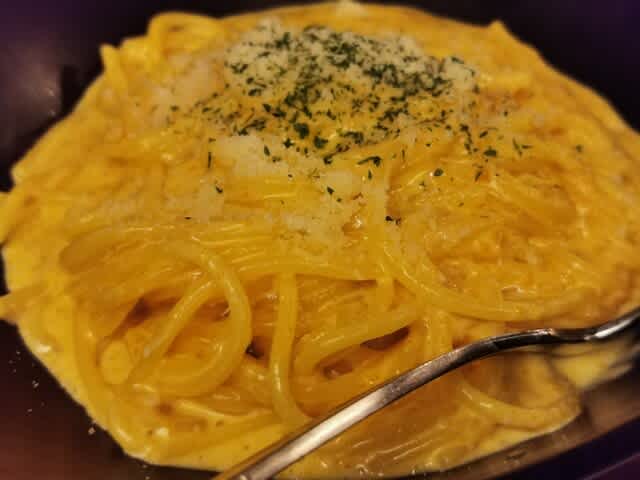 最後はウニのクリームパスタ。説明不要の美味さ。みらんくんが欲しがってましたが、これはあげられない。ウニはちょっとまだ早いかな。