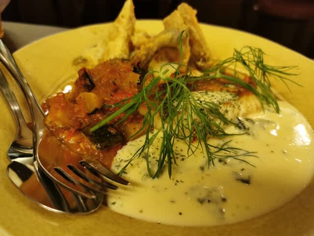 キントキダイのポアレ。みらんくん、バッグバク食べてた。詰まり美味しいと言うことですね。美味しくないと食べないから。