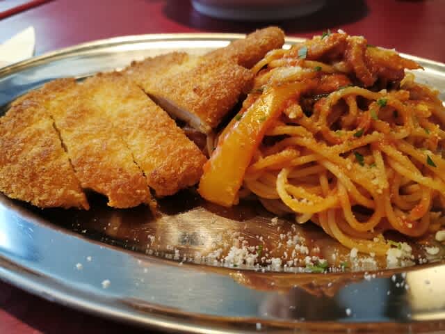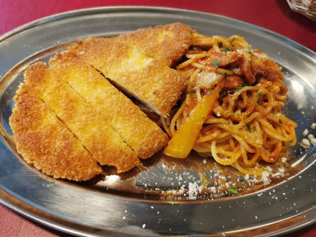 前菜から始まり、大人のナポリタンとコトレッタと言うことで。コトレッタは追加しました。