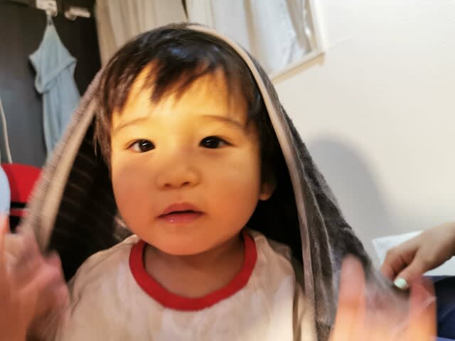 彼なりの何か笑いのツボがあるようで、タオルを頭の上に乗せて、引き剥がして、キャハハハハと。正直何が楽しいのか分からんのだが、この屈託ない笑顔は全てにおいて、良、なのである。