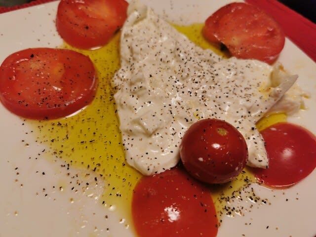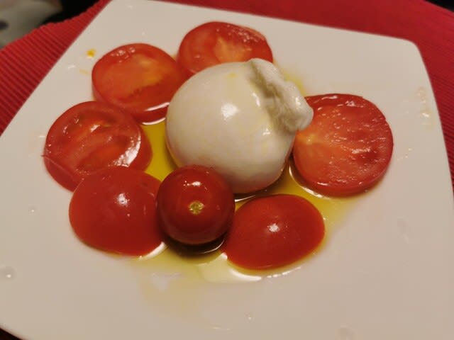 まずはCaprese。最初はこの状態で。黒胡椒とかトリュフ塩とかはみらんくん用には掛けず。