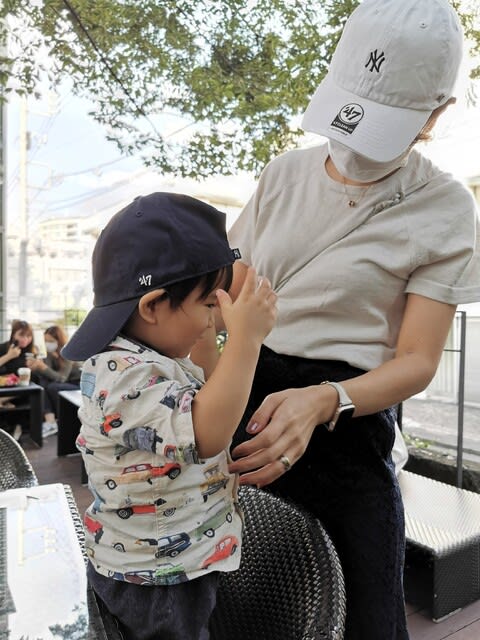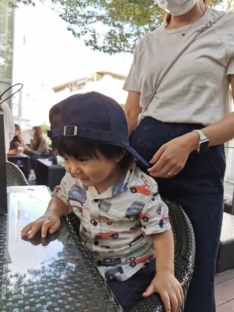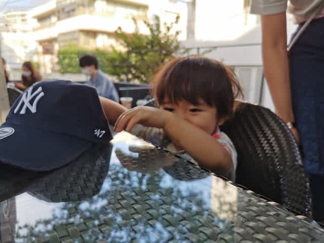 みらんくん、隣のお姉さん2人に可愛い可愛い言われて照れてたと思ったら、そのあと、何度も視線を送っていた(爆)。パパは知ってますよーw。