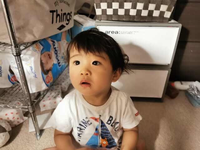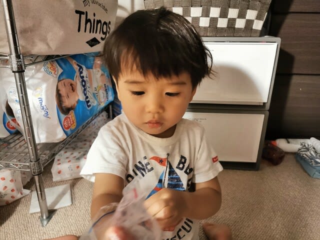 ママのこと大好き過ぎなのは全然良いんだが、夜寝ると言う時に、上着もパンツも総着替え、と言うのはなんだかね…(苦笑)。