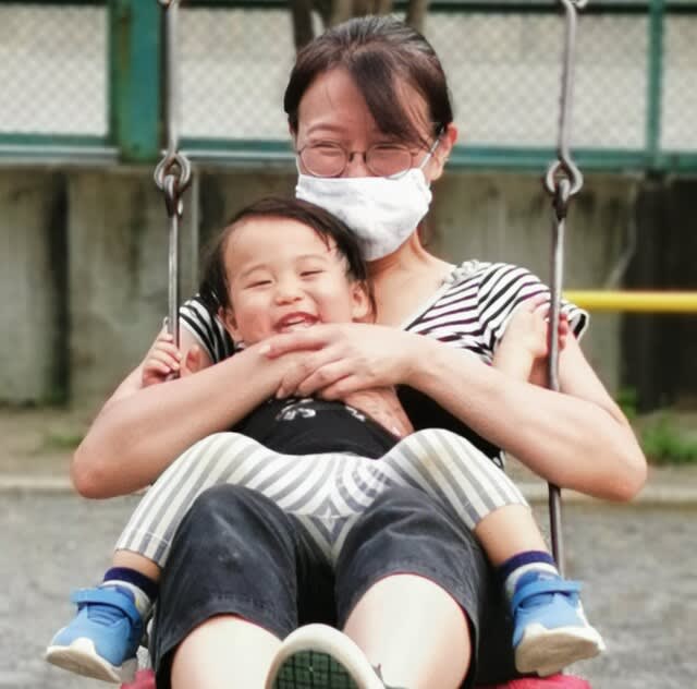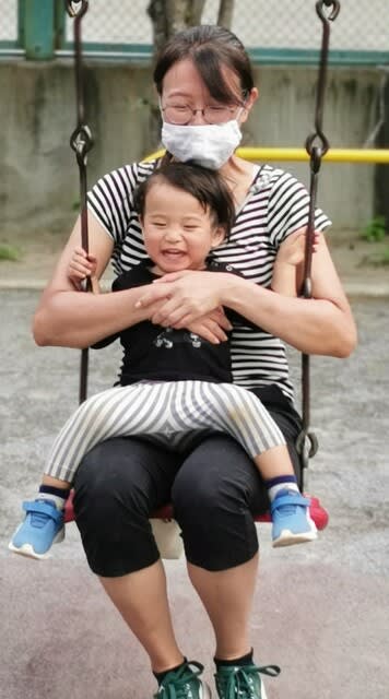 ブランコ乗ってる時、ニコニコで嬉しいな。