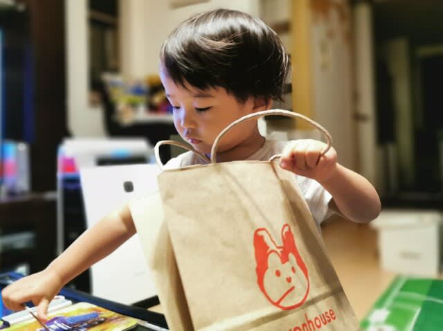 保育園でも、何かの袋の中に物を入れて、お買い物、と言うような遊びをしているようで。