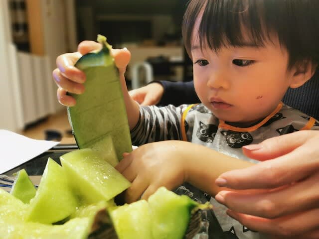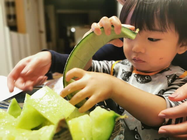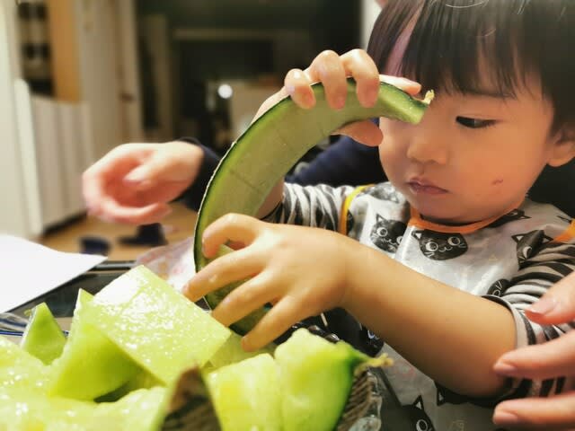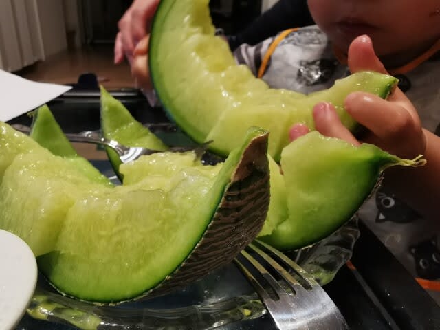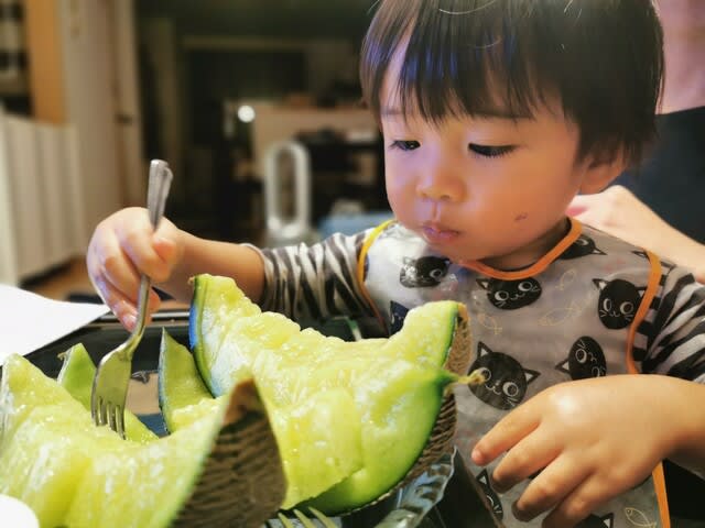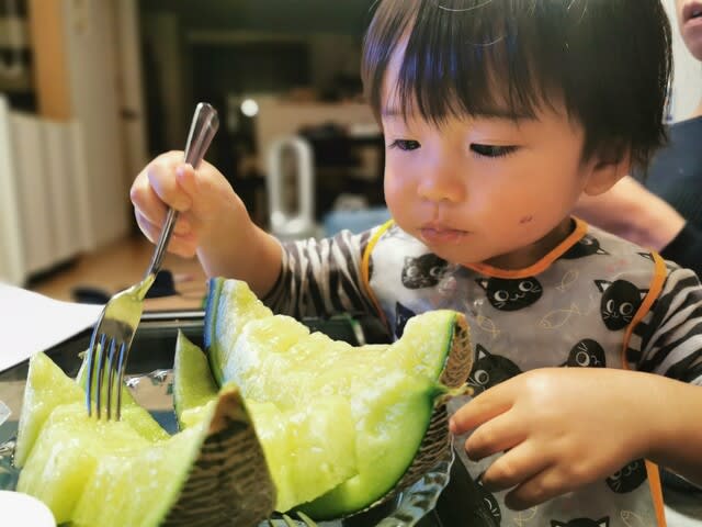 『弟からもらったメロンを頬張るみらんくん・・・』