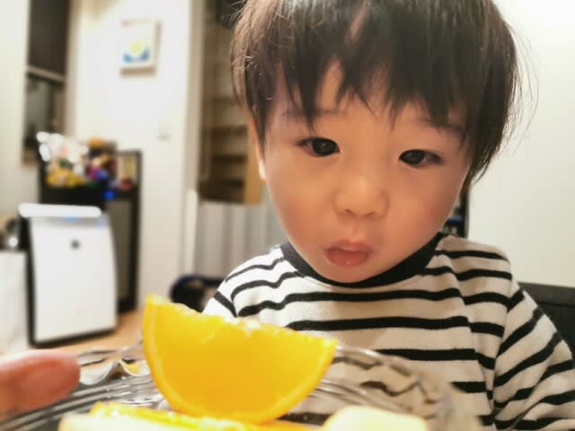 こっちが勝手に効果音入れてみたら大笑いしてた。りんごはシャクシャクって言ったらケラケラ笑ってた。