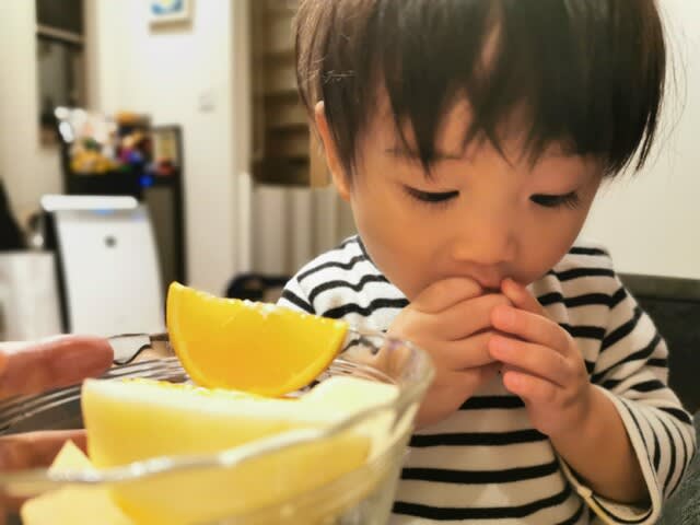 『食後にフルーツ、モグモグモグ···』