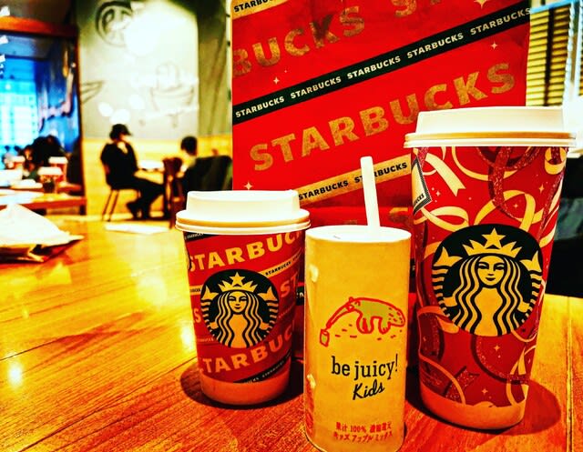 このFestive seasonのデザイン、好きだわ。スタバのカップは毎年こんな感じだよね。